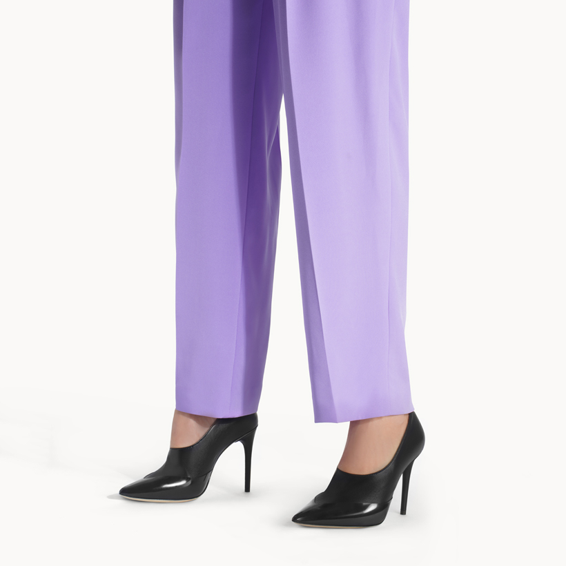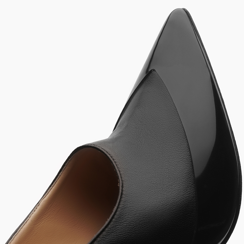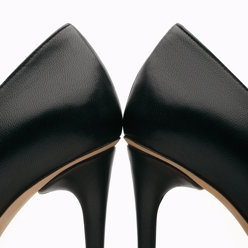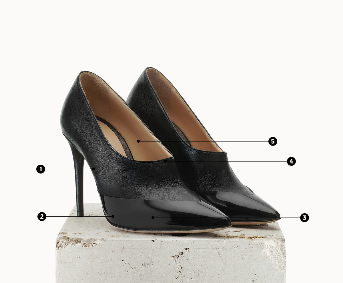 «Voici notre interpretation de l’escarpin Giordano Torresi, une seconde peau grâce au chaussant et une attitude affirmée et imposée grâce à ce nez venant proteger sa forme.» Estelle Morelli